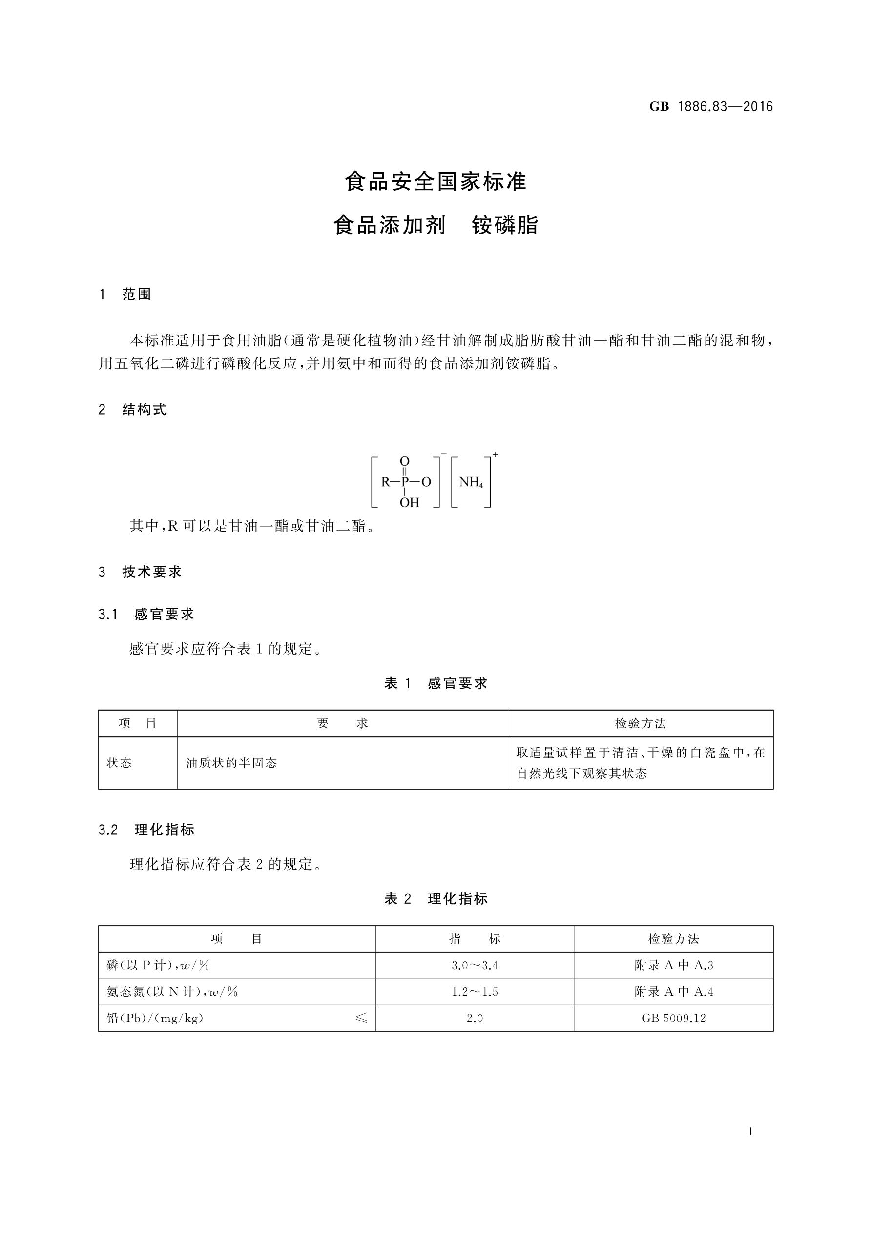 食品添加劑銨磷脂 GB/T 1886.83-2016
