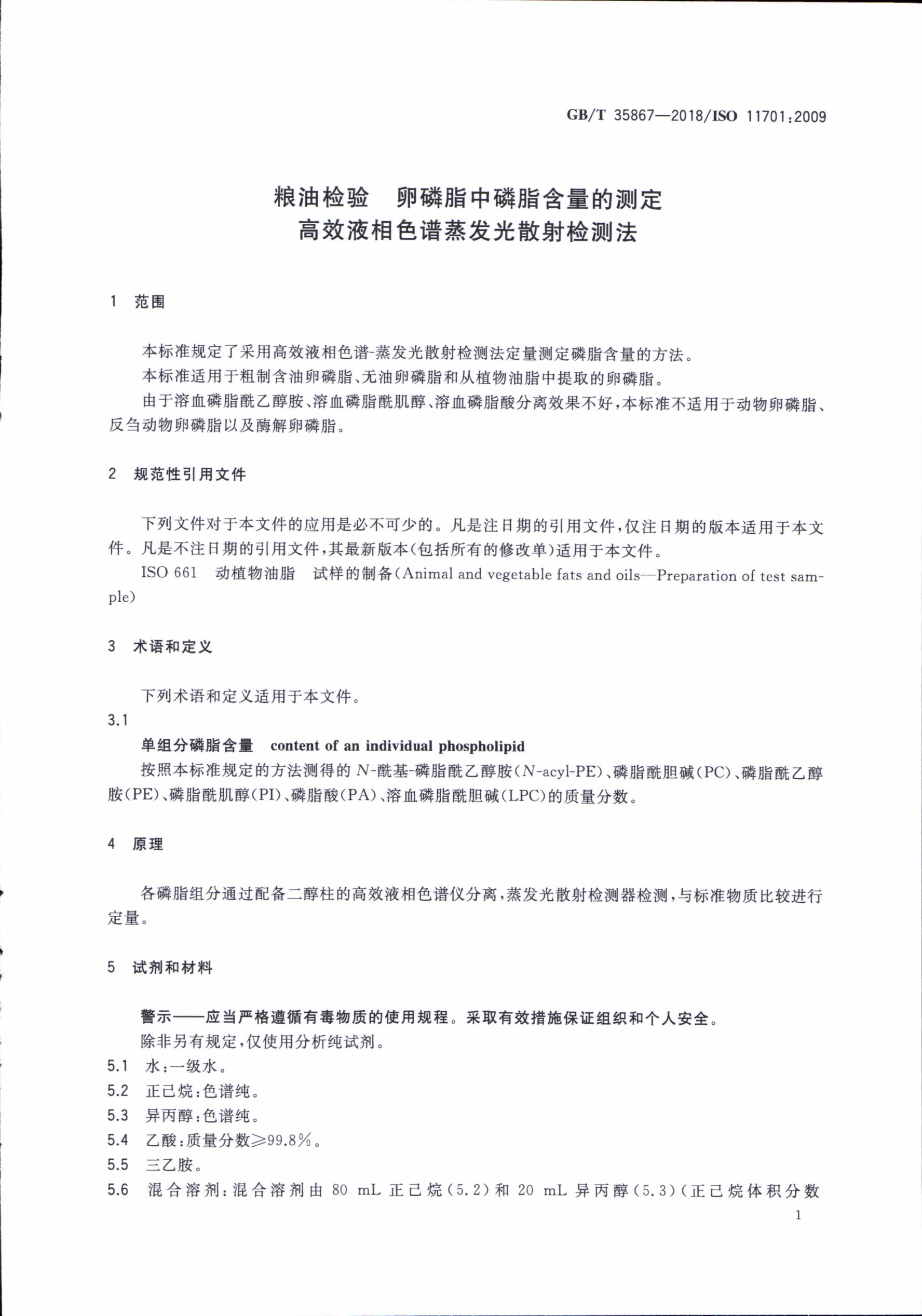 卵磷脂中磷脂含量的測(cè)定GB/T 35867-2018